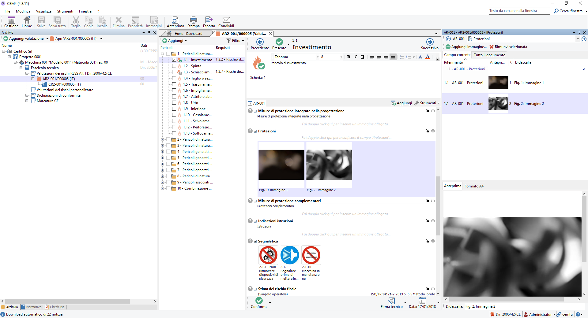 CEM4 "miniature" è la nuova versione 2018 del software, nella quale è sviluppata una nuova interfaccia grafica di lavoro con gestione evoluta delle immagini, in particolare è possibile inserire e gestire immagini a video sempre in evidenza nelle schermate di compilazione delle VR ed in altre posizioni di CEM4 tale da avere immediata evidenza del contesto di lavoro.