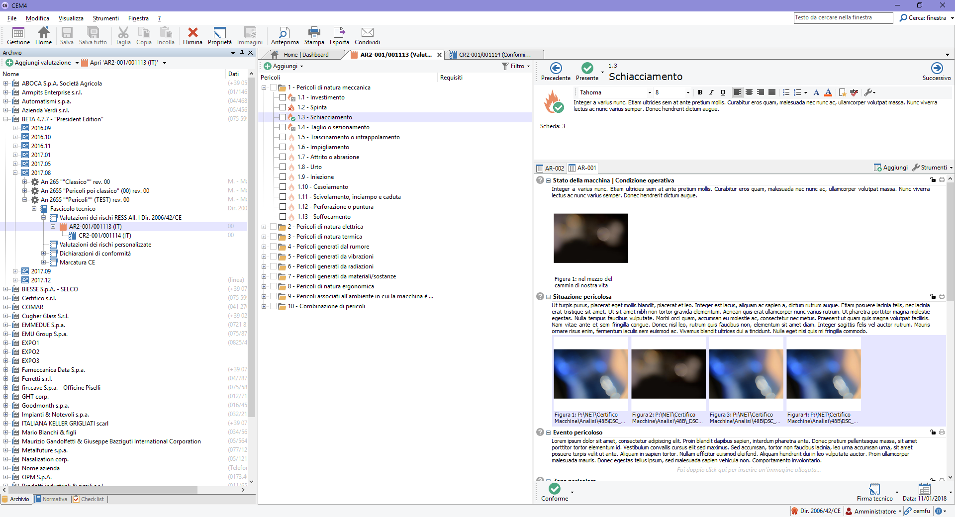 CEM4 "miniature" è la nuova versione 2018 del software, nella quale è sviluppata una nuova interfaccia grafica di lavoro con gestione evoluta delle immagini, in particolare è possibile inserire e gestire immagini a video sempre in evidenza nelle schermate di compilazione delle VR ed in altre posizioni di CEM4 tale da avere immediata evidenza del contesto di lavoro.