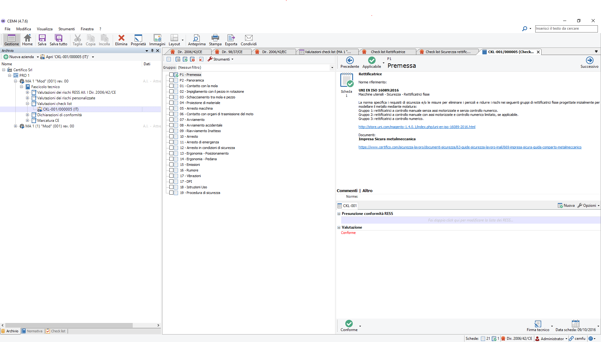 Attenzione, la Check è in versione beta 1, è utilizzabile per macchine rettificatrici non CE, (nel Report sono valutati, RESS conformi della Direttiva macchine ma non necessari, è comunque possibile ometterli).