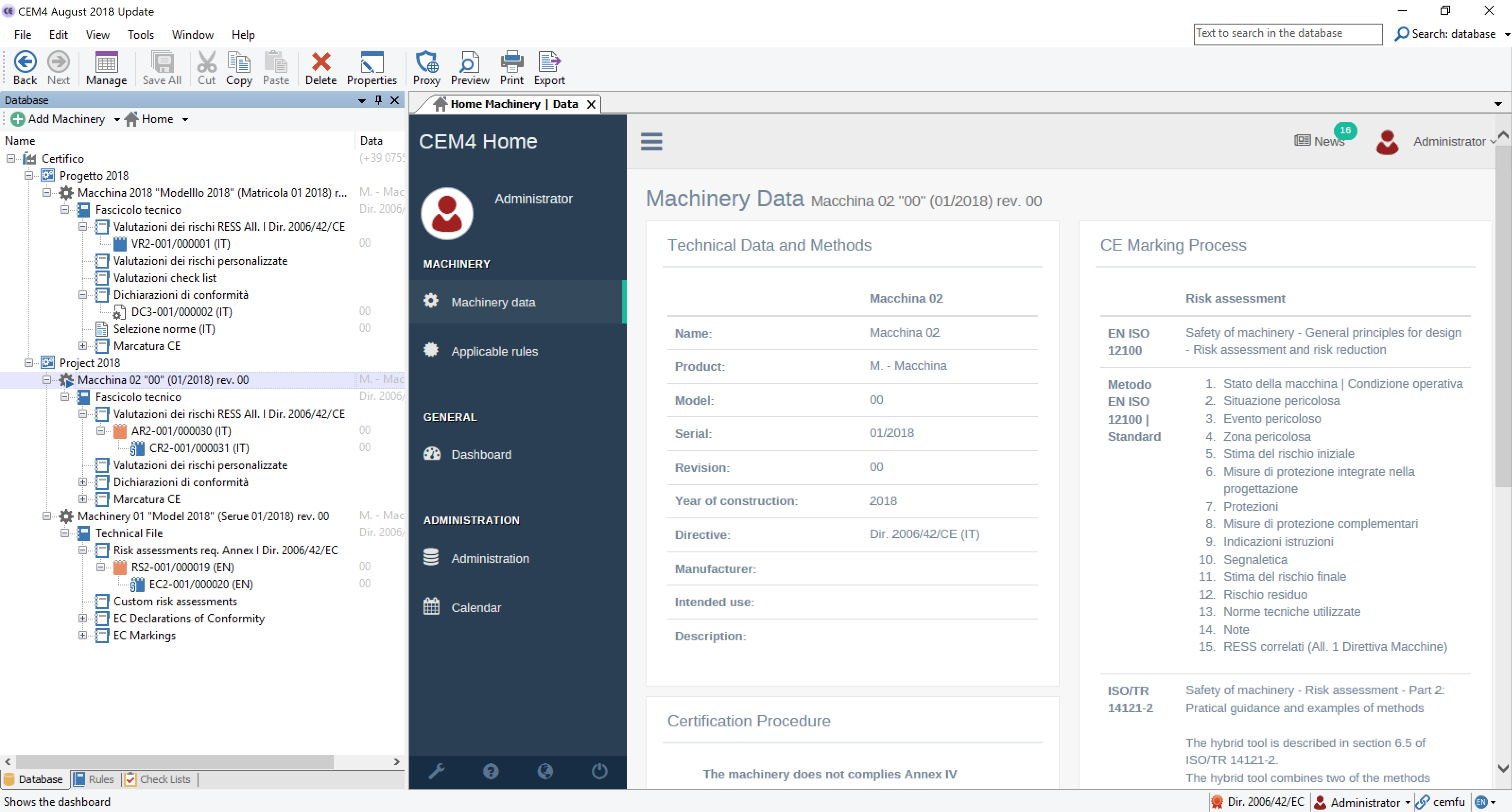 CEM4 "miniature 6", 6a versione 2018, modifica, in particolare, la veste veste grafica per la "Home macchina" (Vedi), relazionata al nuovo "Report dettagli macchina e metodi", stampabile dalla stessa, esempi: (Download EN) (Download IT)